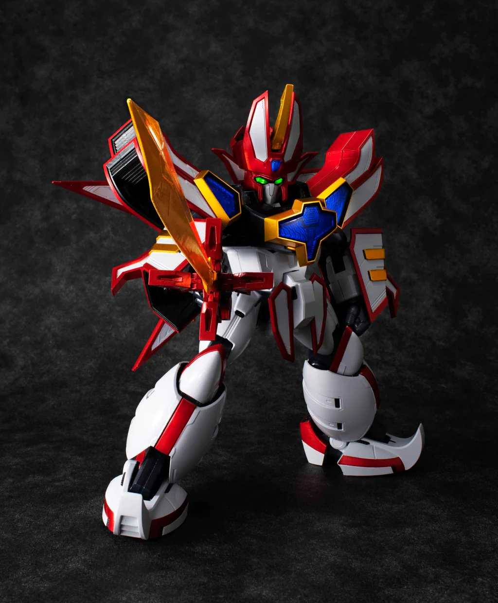 The body is approximately 30% larger than previous figures in the VA series, allowing for an even more detailed sculpt as well as light-up eyes when the Gaia Visor is lowered. In addition, the model can completely transformed from Face Mode into Battle Mode - a figure clearly worthy of the "Hi-SPEC" name!